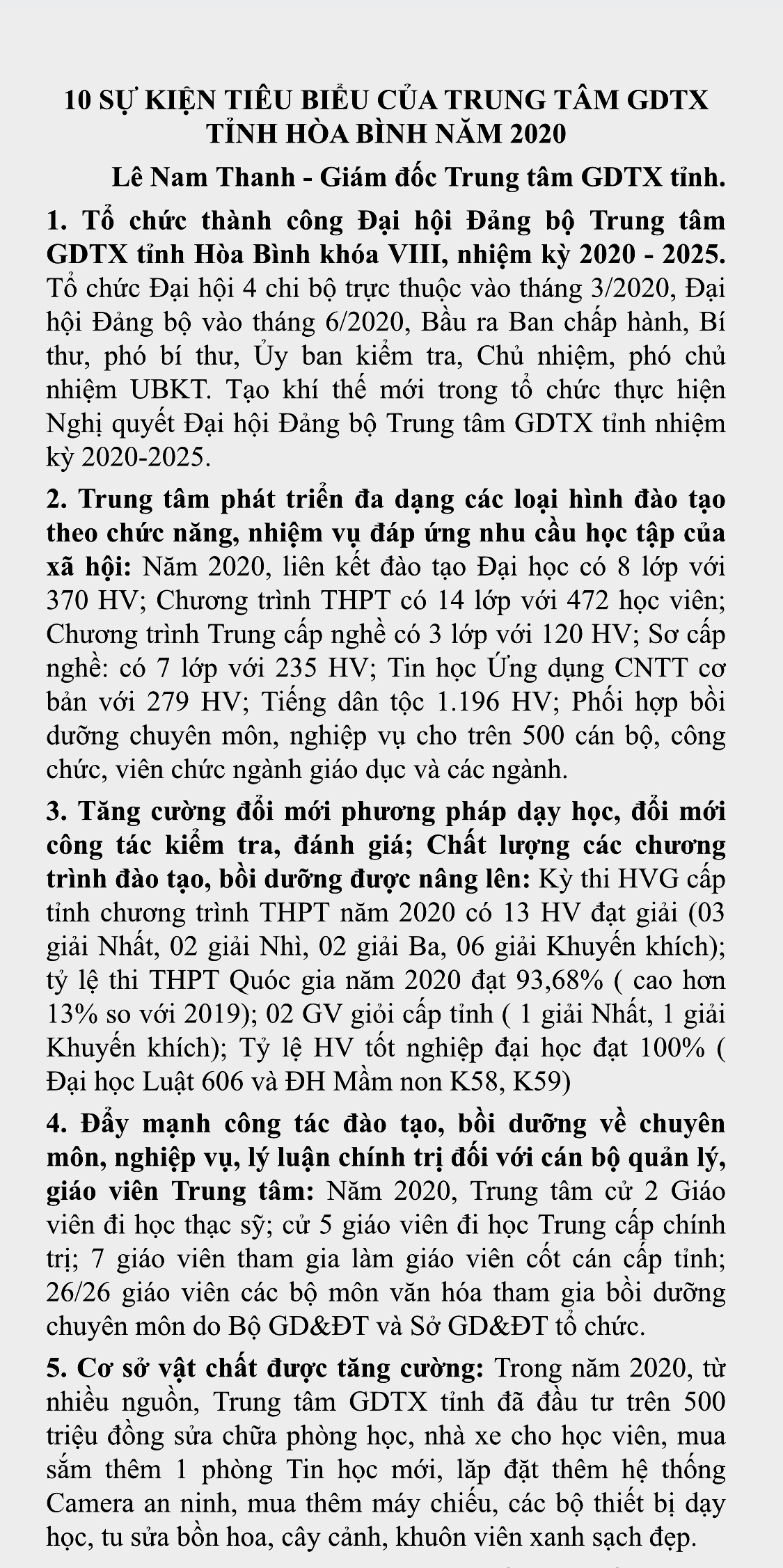 Chiều ngày 12 tháng 06 năm 2018, Chi bộ Phòng Ngoại ngữ và DVH thuộc Đảng bộ Trung tâm GDTX tỉnh Hòa Bình đã tổ chức Lễ trao Quyết định công nhận đảng viên chính thức cho đồng chí Ngô Thị Tuyển, đồng chí Nguyễn Thị Ngọc Thanh với sự tham dự của các đảng viên trong Chi bộ. Tới dự với buổi lễ còn có Đ/c Lê Nam Thanh – Phó bí thư Đảng bộ, giám đốc Trung tâm GDTX tỉnh, Đ/c Nguyễn Mạnh Thắng, Đ/c Nguyễn Xuân Hưng là Đảng ủy viên Đảng bộ Trung tâm GDTX tỉnh Hòa Bình