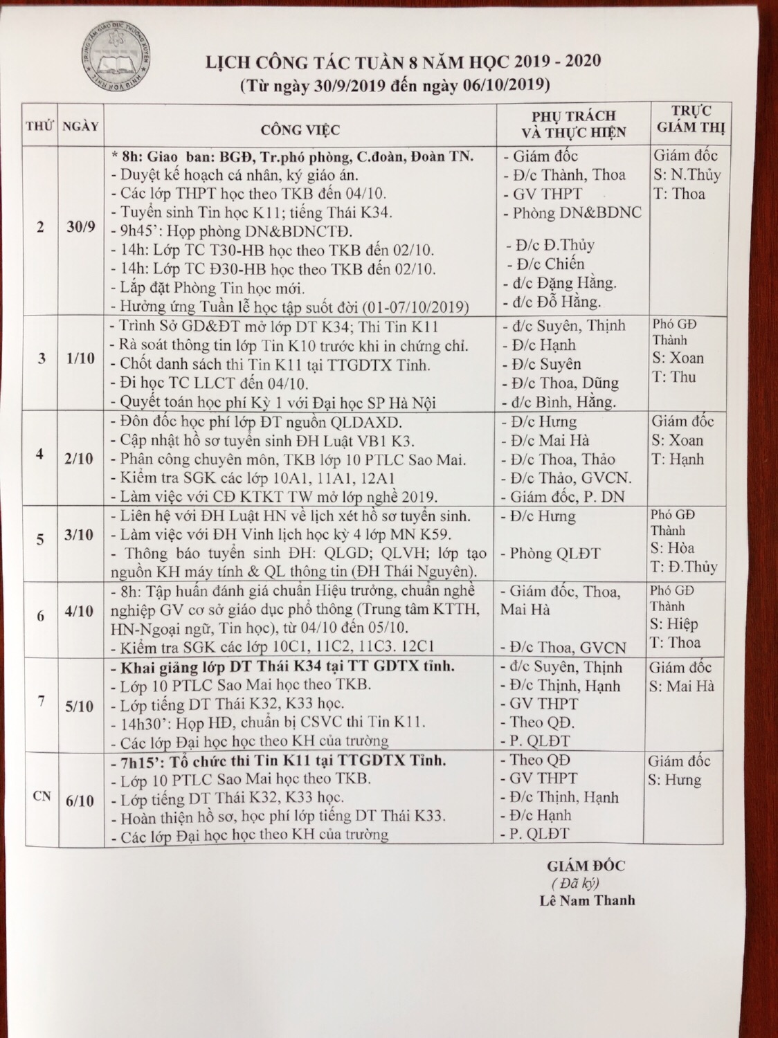 LỊCH TUẦN 33 (19-25/4/2021)