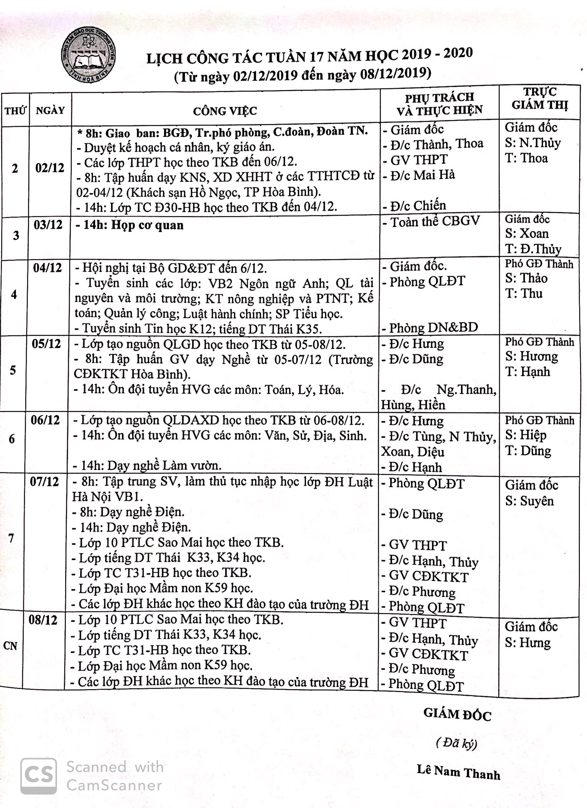 LỊCH TUẦN 24 (13-19/01/2025)
