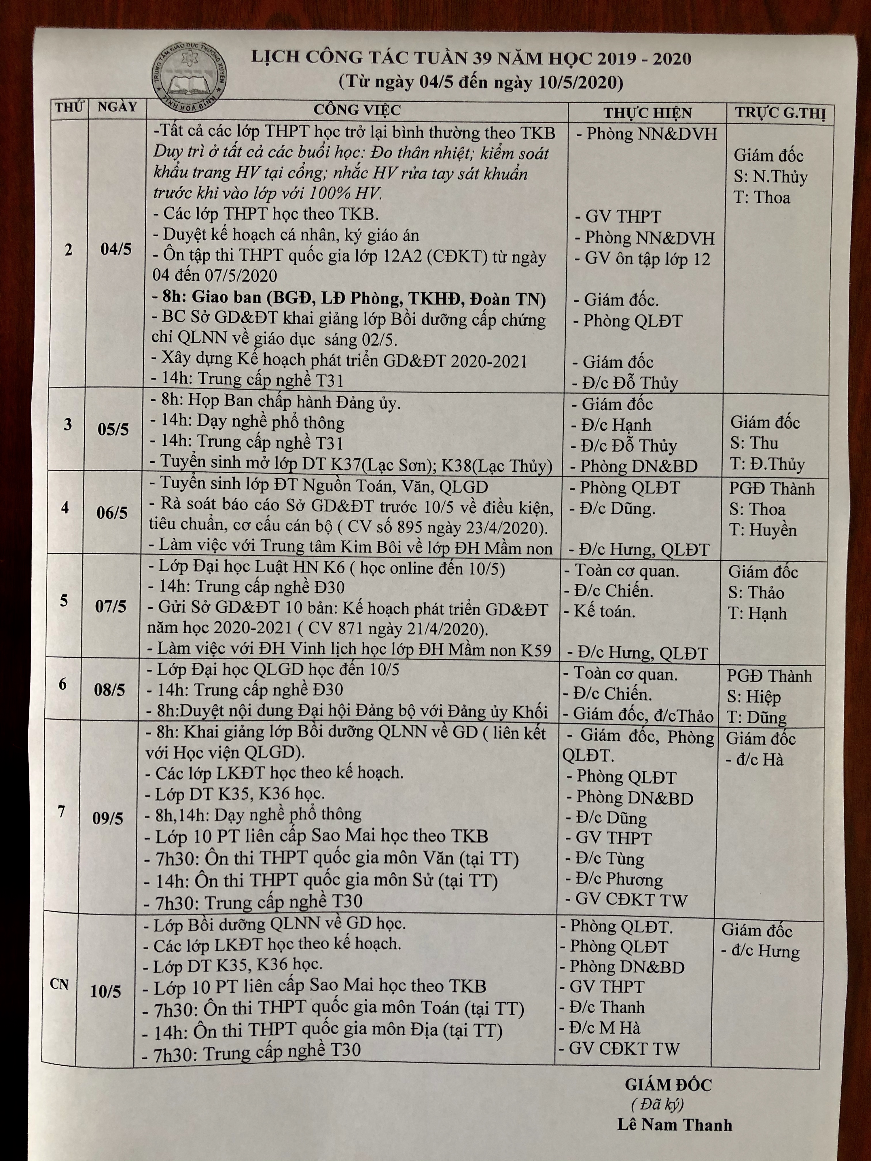LỊCH TUẦN 34 (26/4-02/5/2021)