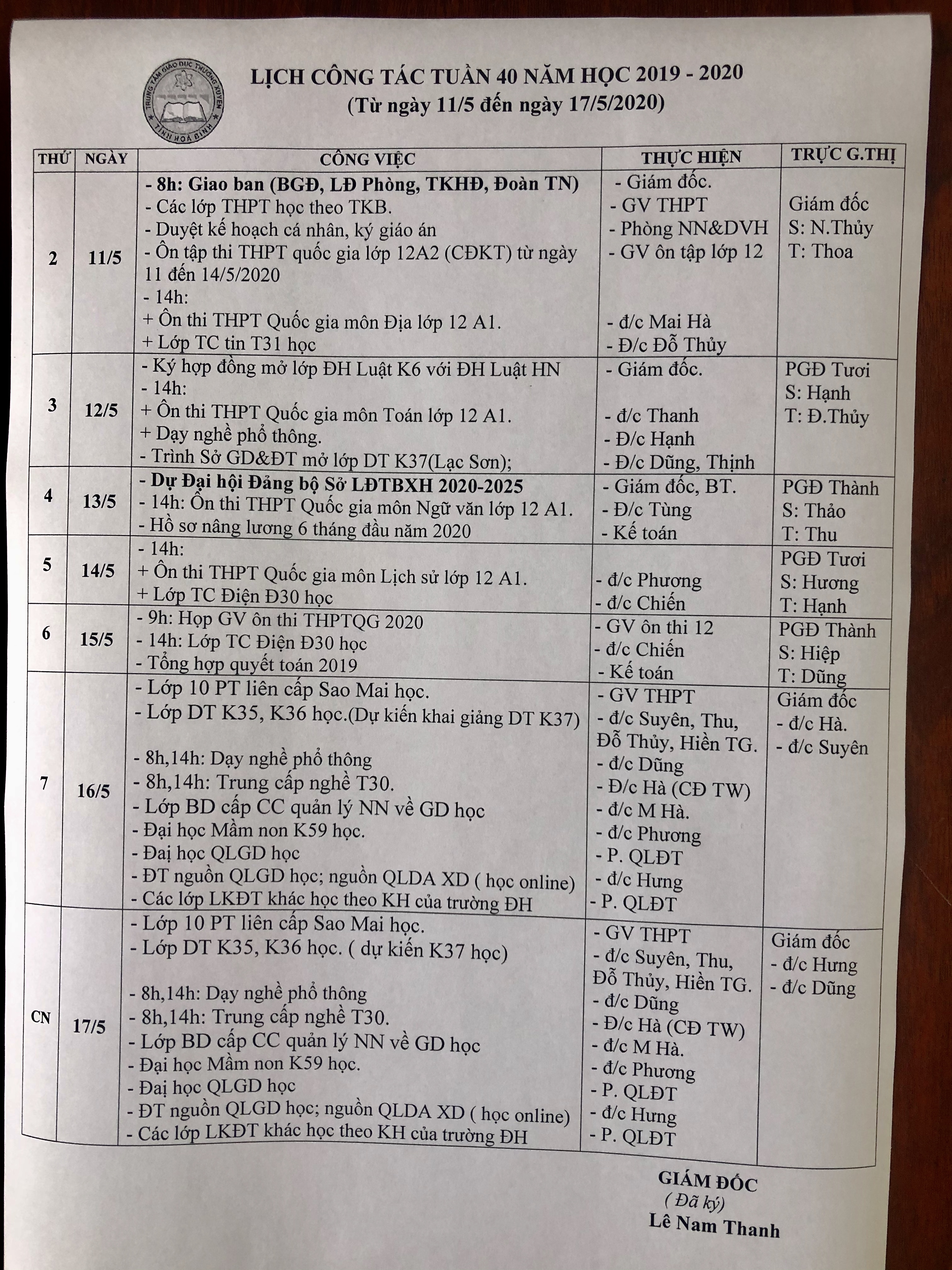 LỊCH TUẦN 35 (03-09/5/2021)