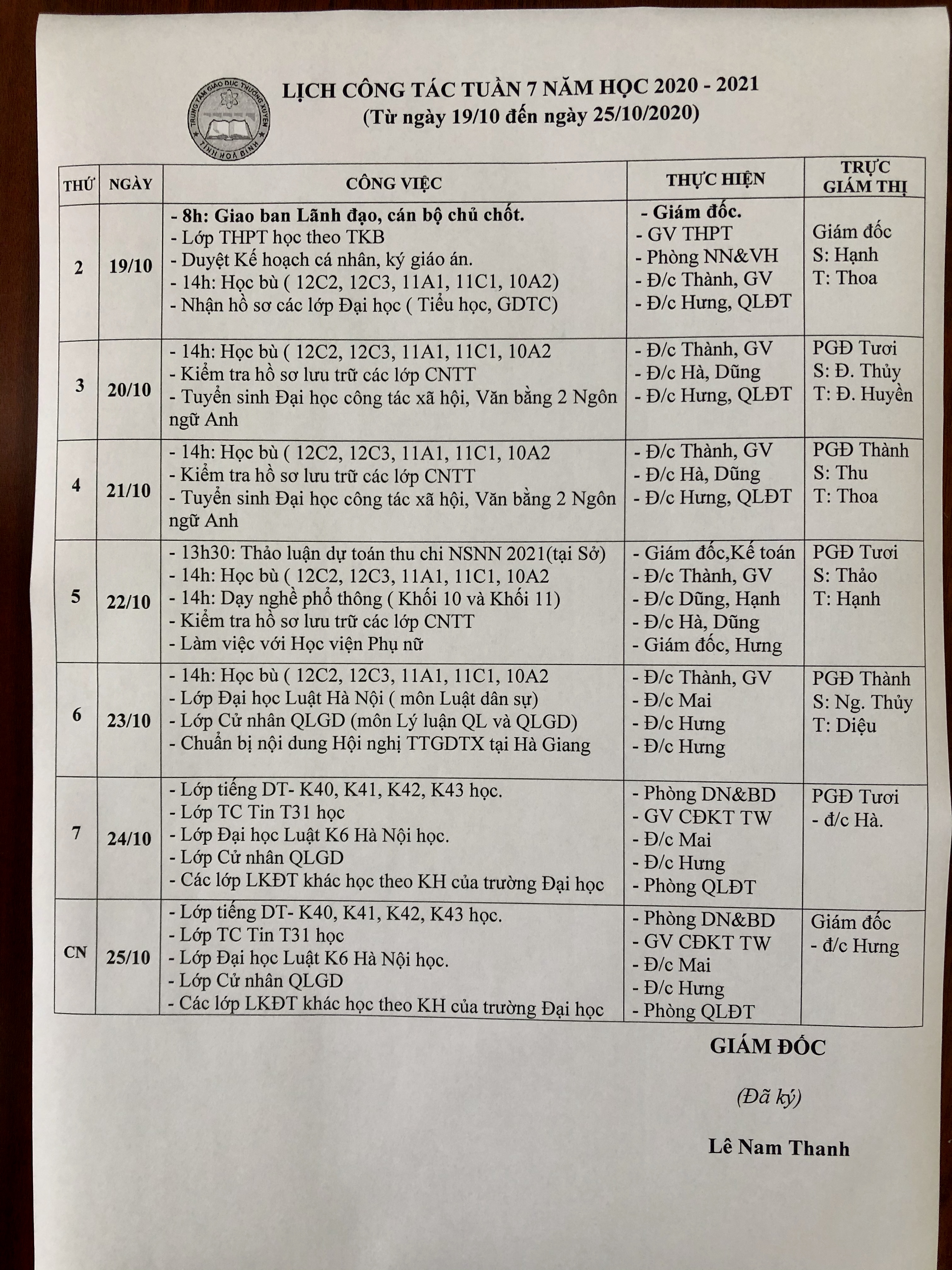 LỊCH TUẦN 34 (26/4-02/5/2021)