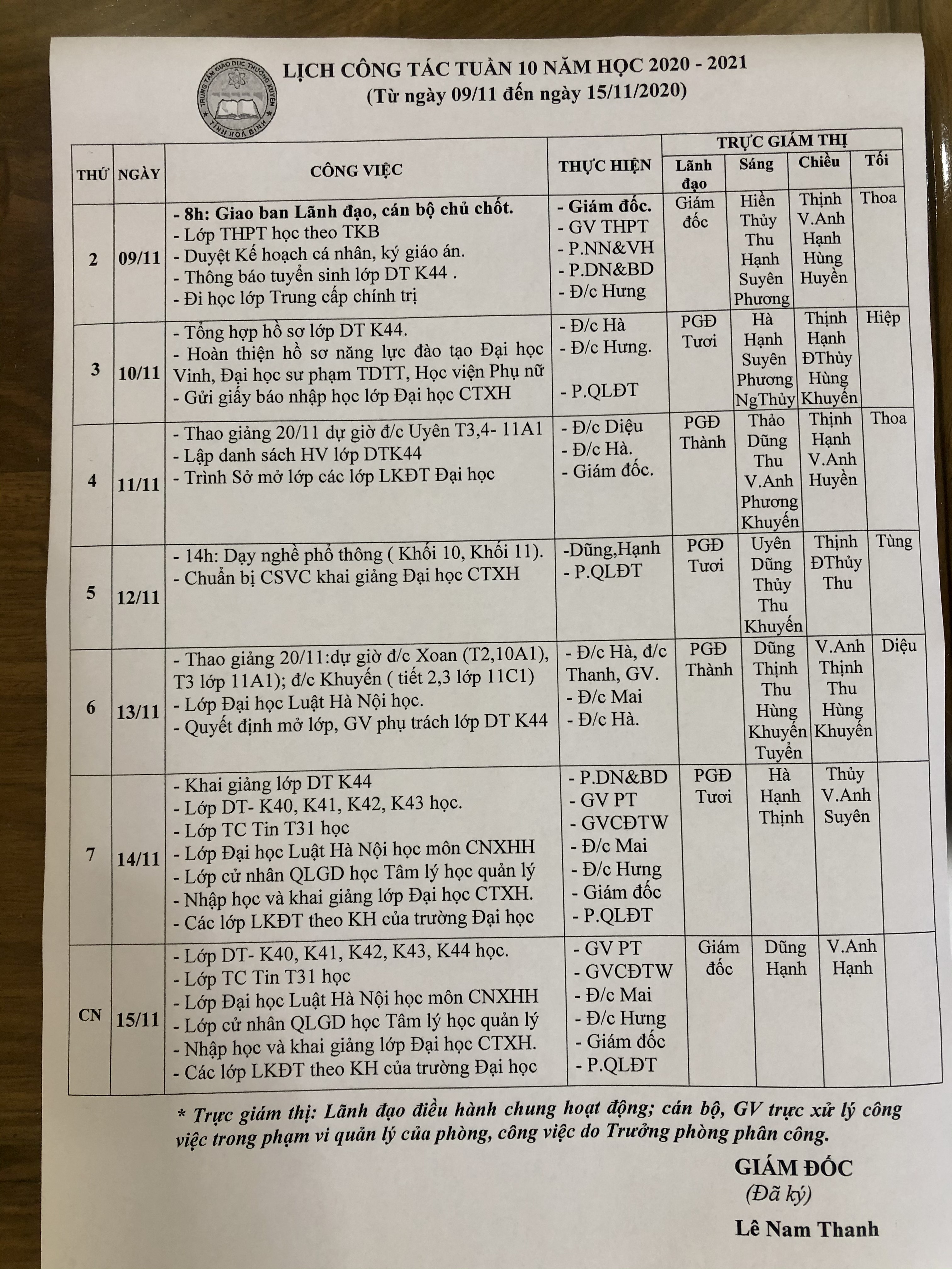 LỊCH TUẦN 34 (26/4-02/5/2021)