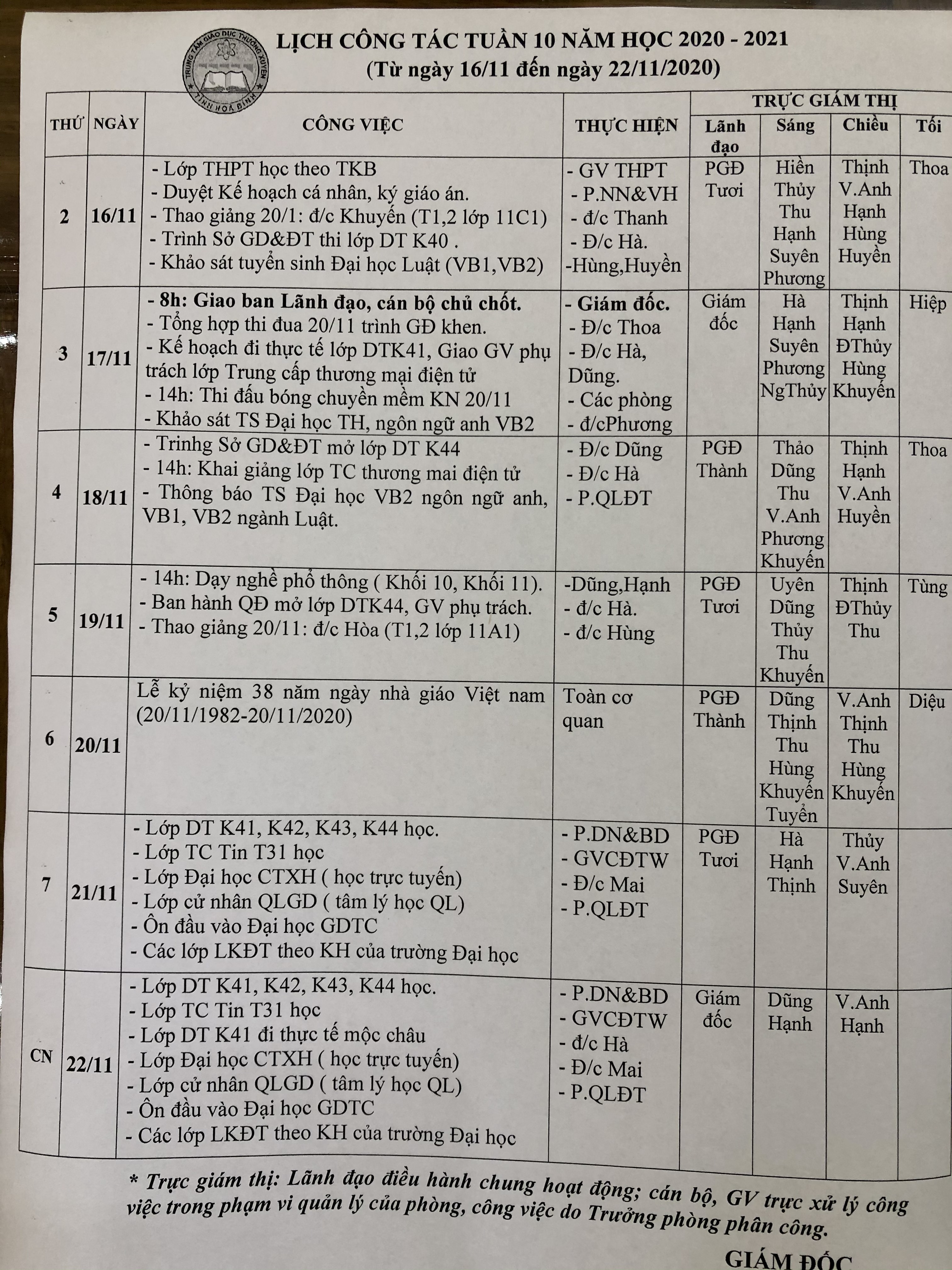 LỊCH TUẦN 34 (26/4-02/5/2021)