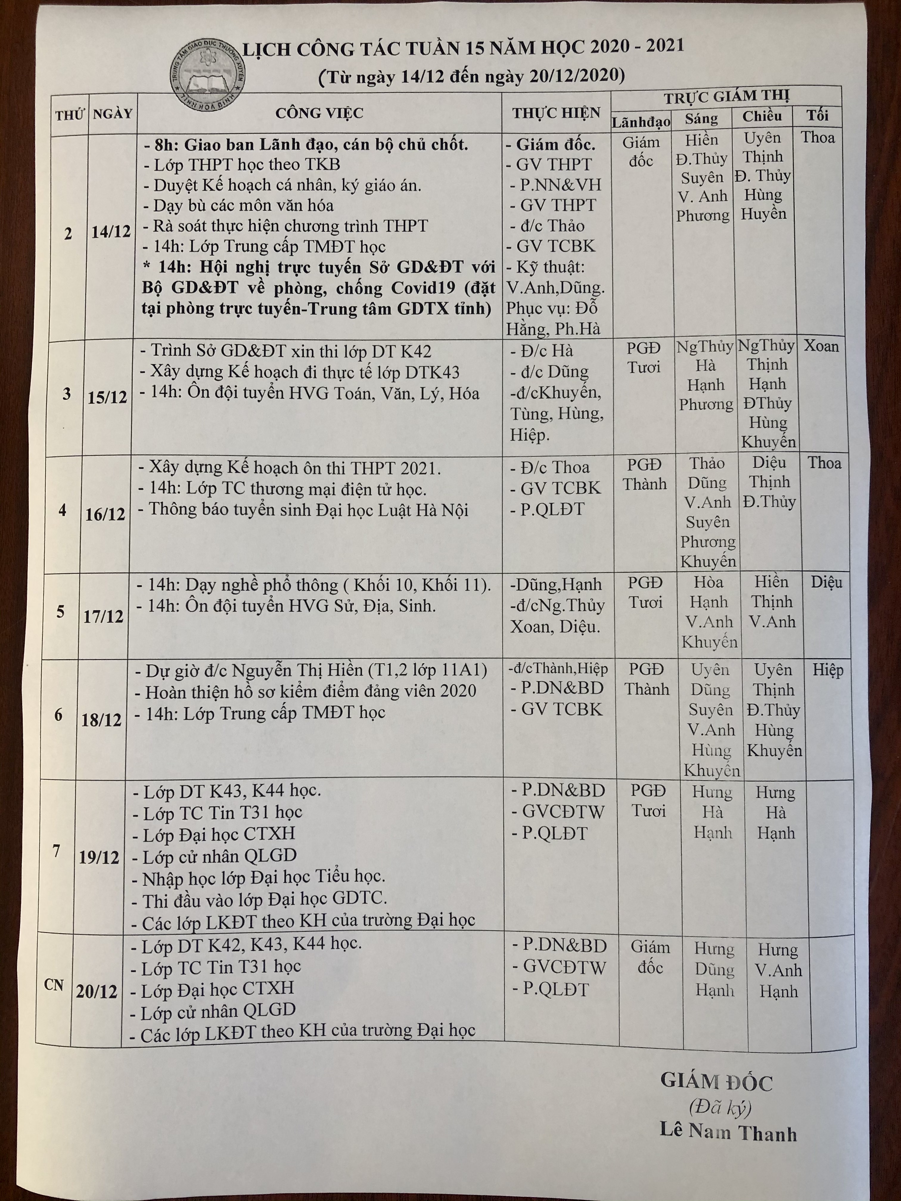 LỊCH TUẦN 32 (12-18/4/2021)