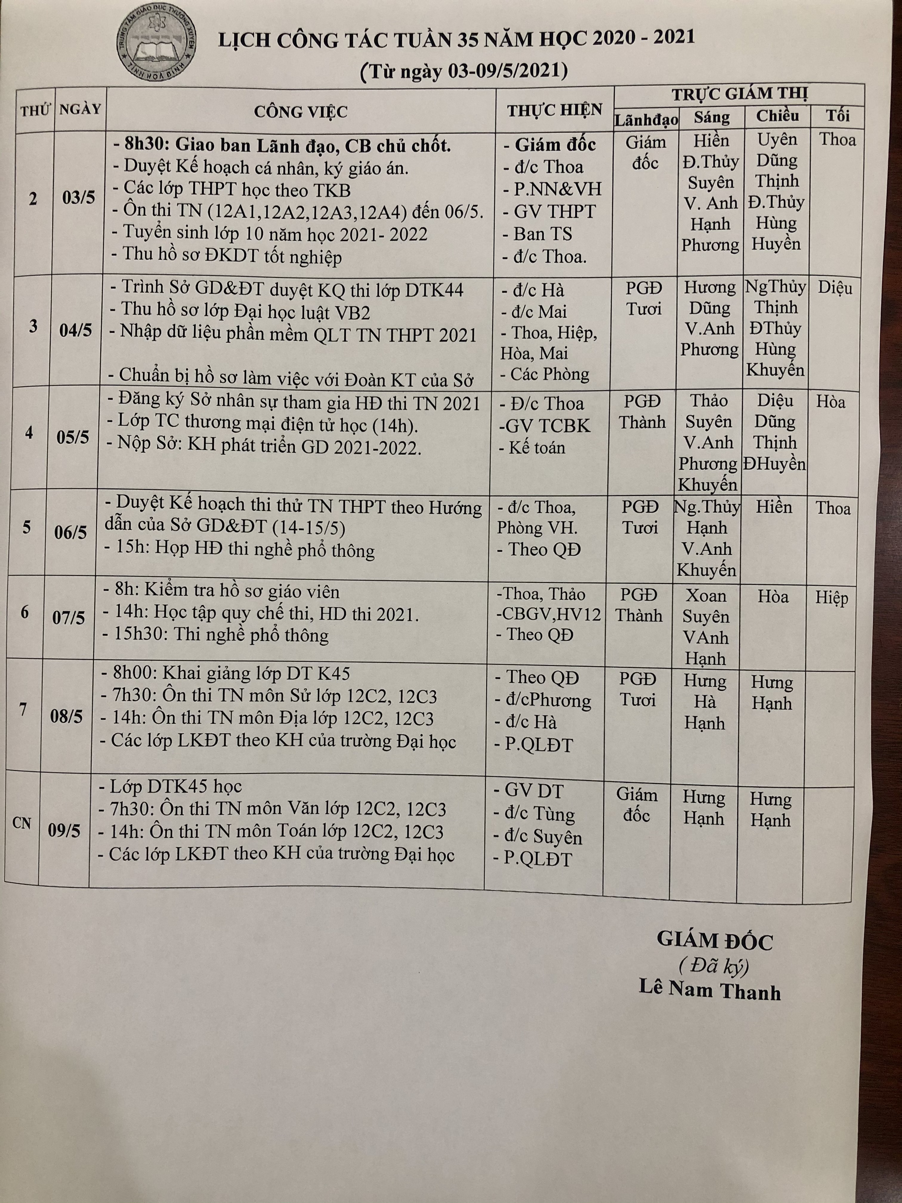 LỊCH TUẦN 34 (26/4-02/5/2021)