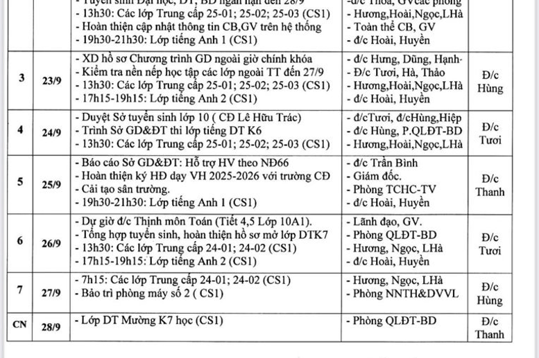 LỊCH TUẦN 30 (29/3-04/4/2021)