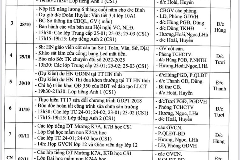 Lịch công tác tuần 8 năm học 2025-2026